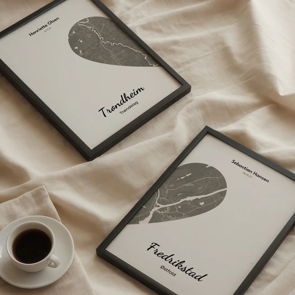 Stedene vi bor, reiser og opplever ting betyr mye for oss. Hvert design er sitt eget unike kunstverk med uendelig mange personlige minner.